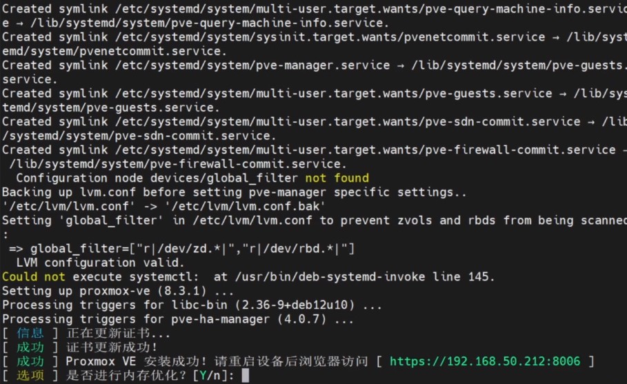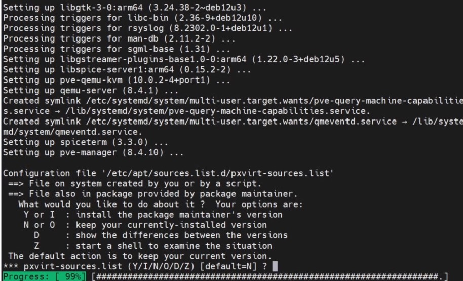 过一会选择重启,重启后过一会用你的Armbian的ip地址加上端口8006就可以进入PvE的管理后台(例如:192.168.0.8:8006)